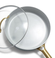 In an eye candy shade of blue that will complement any kitchen, this set from our Padova collection is more than its looks: duo forged hard anodized aluminum construction makes them extra tough and scratch-resistant while also promoting even heat distribution. Each piece features our Thermolon™ healthy ceramic nonstick coating, which is reinforced with diamonds to make it ultra-durable and heat responsive (all free of PFAS, PFOA, lead, and cadmium). With a set that’s made to cover everything, the meal possibilities are endless—flavorful frittatas, stir fries, and perfectly seared seafood are just the start.