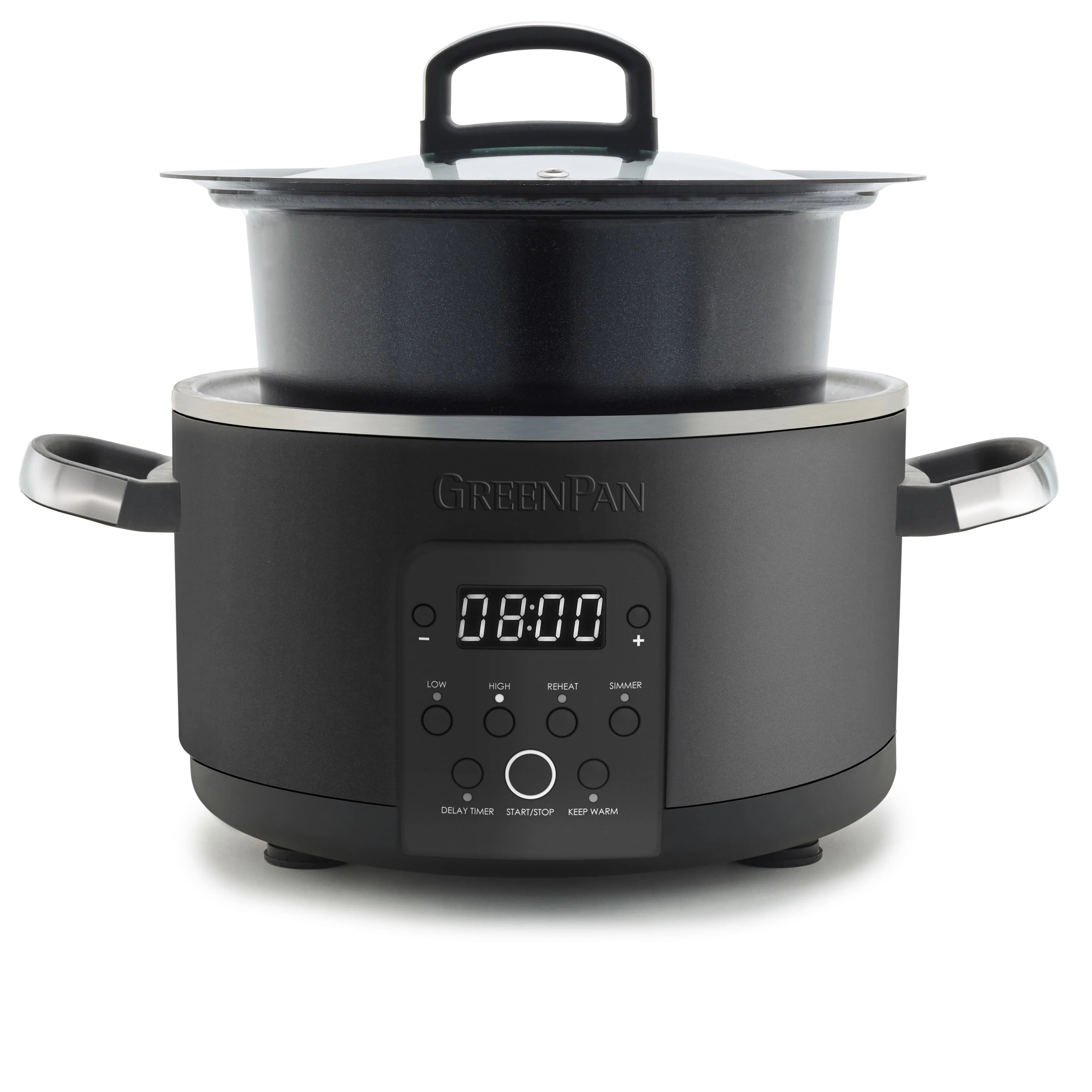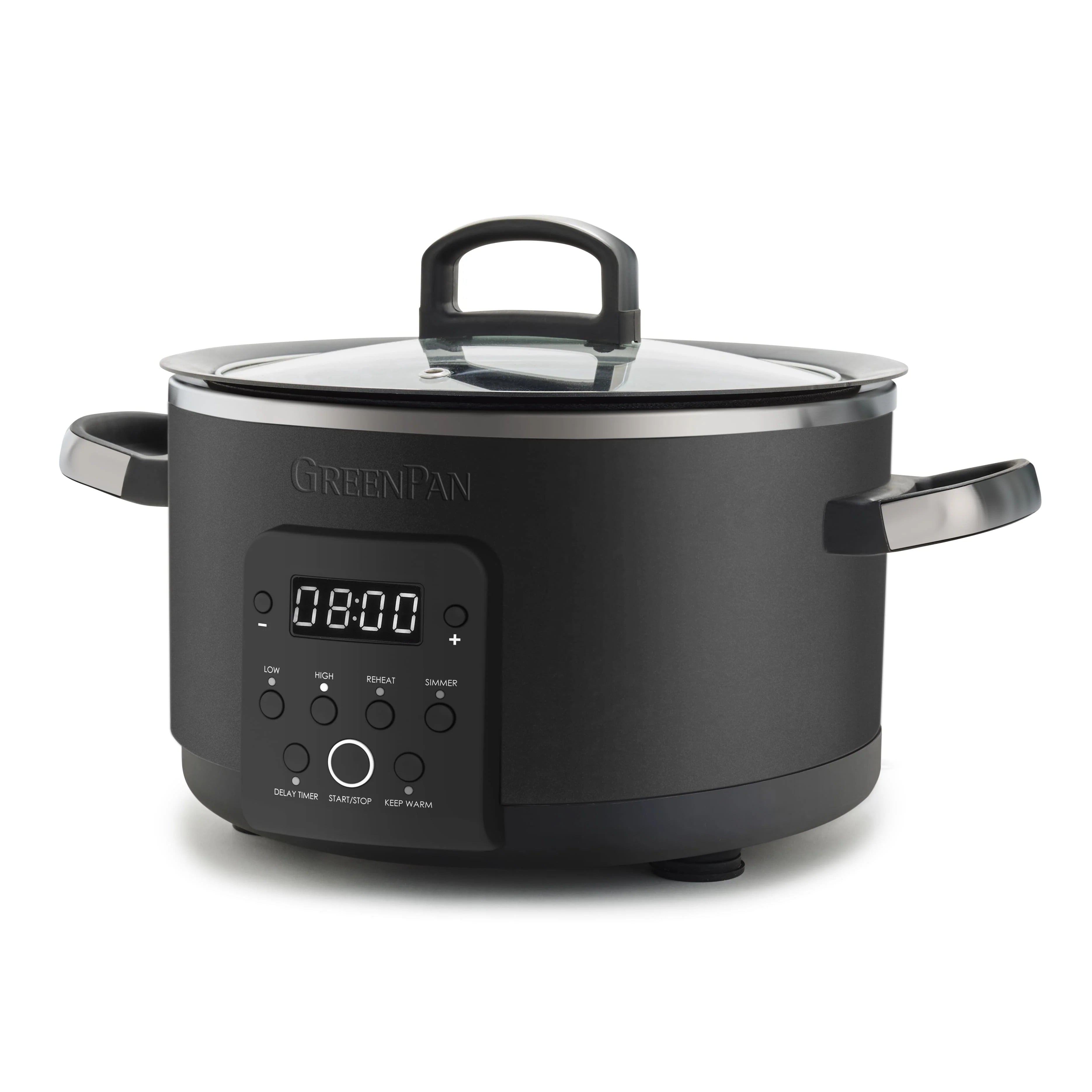 6-in-1 Design: low/high heat, delay timer, simmer, reheat, and keep warm