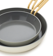 Stanley Tucci partnered with GreenPan to create a cookware collection from the ground up, focusing on innovations that take cooking to the next level. Packed with cutting-edge details, this frying pan set brings high-tech cooking to any kitchen. Made in Italy, these pans feature heavy-gauge 5mm bodies with a cutting-edge Plasma Tech treatment that complements our Thermolon™ ceramic non-stick coating for remarkable PFAS-free performance.