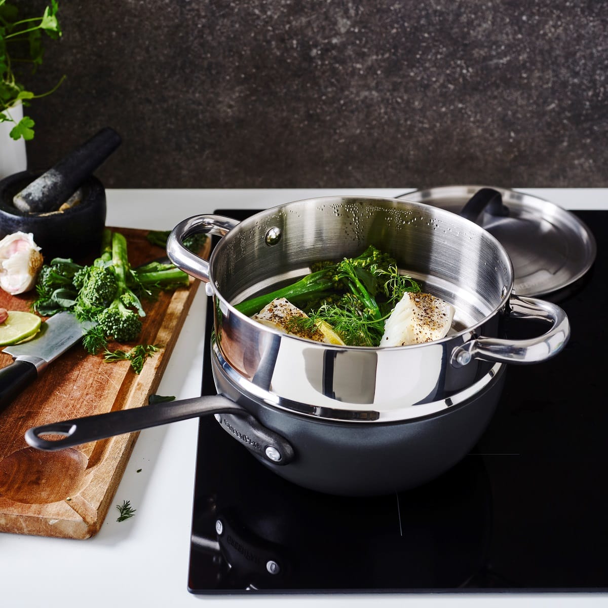 Easily create your own steaming set at home. Simply fill your pot or pan with some water, place our steamer insert onto your cookware, add your lid on top and voila your very own steaming set.