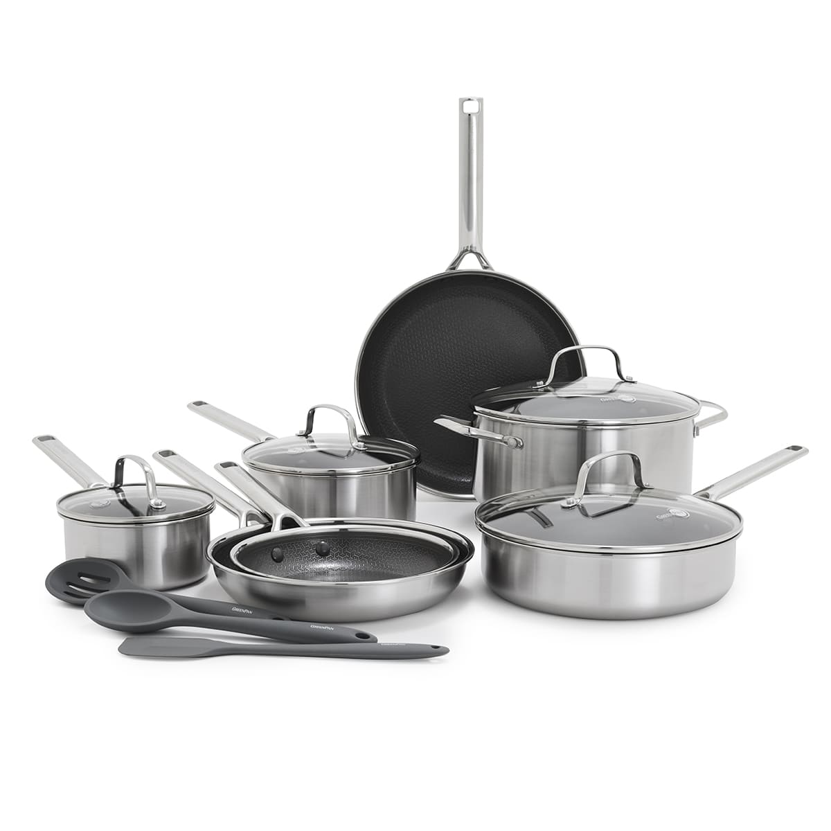 The multilayer design features two layers stainless steel surrounding a powerful aluminium core for fantastic heat transfer, exceptional searing, and browning perfection